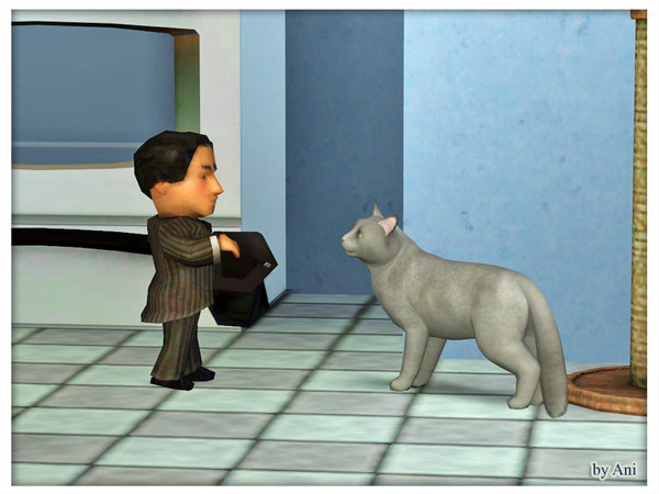 This magician gnome seems like he is showing a magic trick, just with the grey cat looking at him.