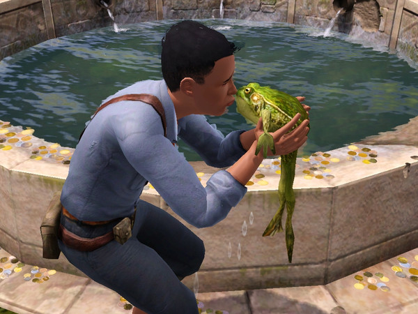My sim's evil son, Alexander, wish for love and this frog jumped from the well. He gave it a kiss but nothing happened. Both he and the frog were grossed out by the kiss and the frog jumped back in the well.