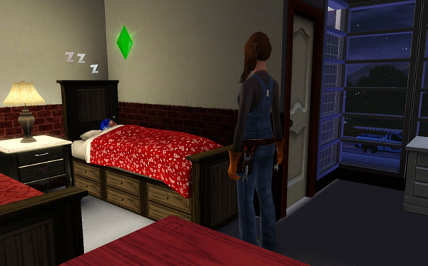 when i went to check on my teen sims i noticed a repair girl watching her at the end of her bed i couldn't figure out why but i thought she was creepy as i watched her stand their for about 10 minutes