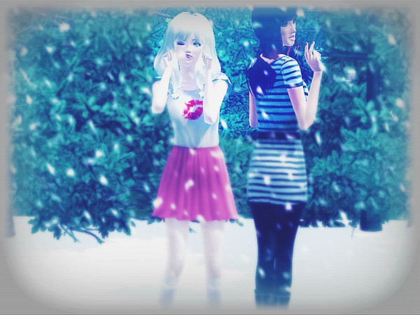 My 2 sims posing in "snow" If you want to make yoour picture like this the websit is ipiccy.com