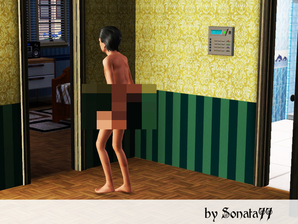 Sim went from bathroom to bedroom. But... oops... forgot to put on clothes...
