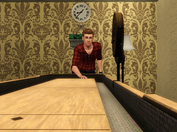 I was trying to achieve a shot where I was looking from the perspective of a puck on the board while my Sim was looking serious and focused...it seems like I still have a lot to work on. But in the meantime, I'll just let my Sim enjoy shuffleboard-ing!