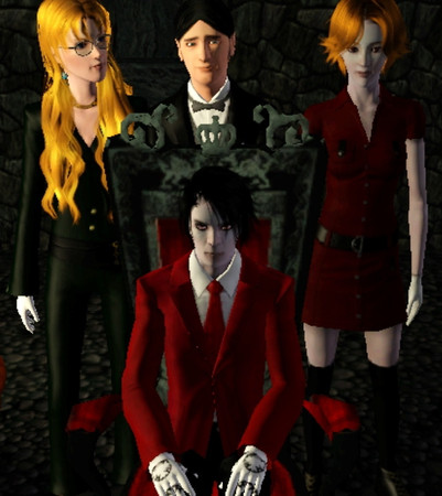 This is Hellsing in sims 3 style, i've made Alucard, Seras, Interga and Walter and all the hair styles, half of the clothing etc were downloaded from this site and the FREE section. Hope you like it.