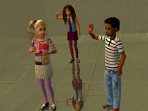 Some of the childrens 80s clothes collection I've been making - knitted sweaters, denim jackets, leggings, white wash jeans, etc. (All clothes by me but I didn't make their hairstyles)