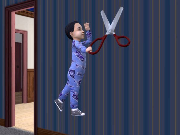 Actually he IS sort of floating with scissors. He's a buggy toddler I played with years ago. He "thinks" he's a teen. I also made him into a vampire and a zombie for awhile.