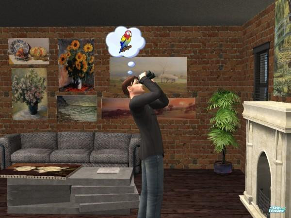 I had taken my object-testing house off of pause for a couple minutes without noticing... right up until the resident model wandered into my view, bird-watching indoors... I don't see any parrot, do you see a parrot!?