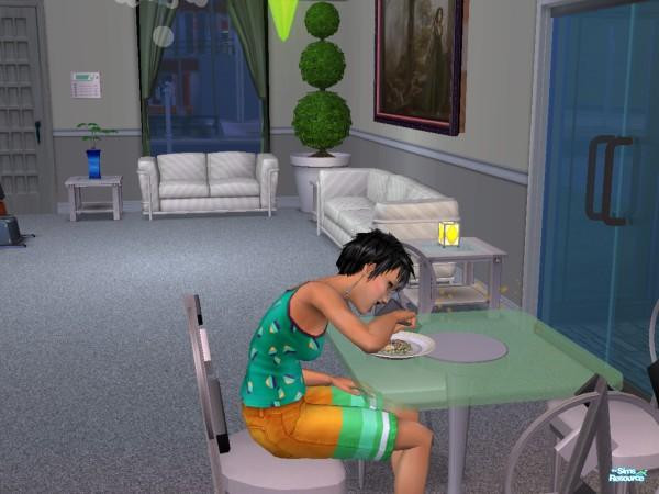 How can such a pretty Sim lady 'gobble' her food down this way with it flying everywhere? I wish we could teach table manners to Sims!! (LOL)