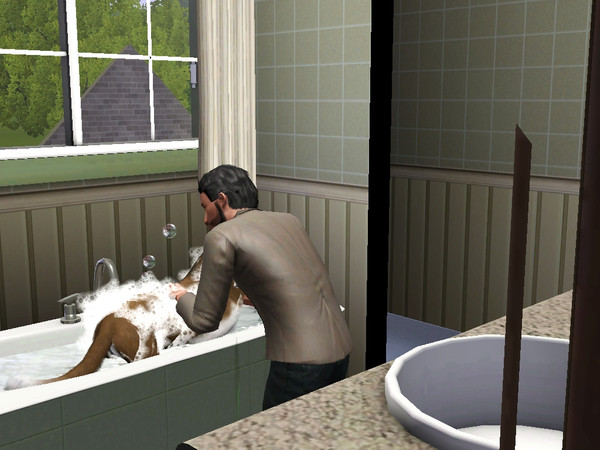 Willem gives Filou a flee bath!