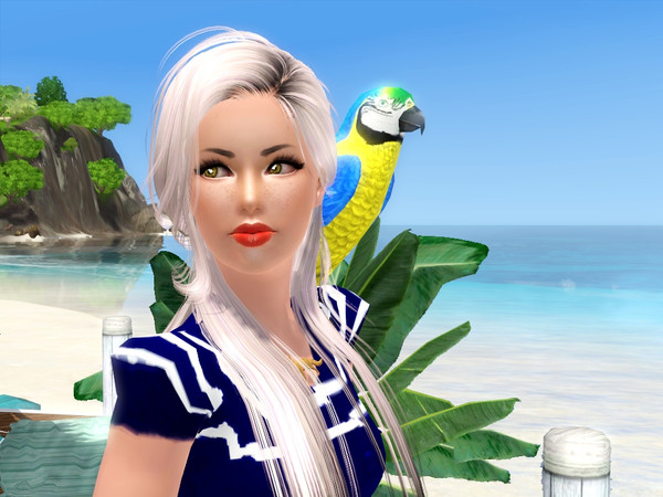 SO pretty! I love the parrot, her hair, her look and the overall aspect of the picture. Clean and Colorful!\:\)
