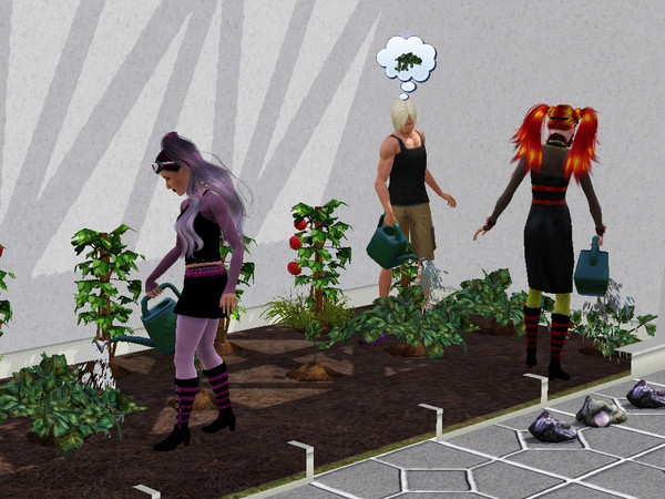 i went to go check on my plants and as i know it here is my sims watering plants together i thought it was kind of cute because i never seen them do that