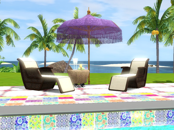 Au premier plan (piscine et bord) : Lien de t�l�chargement : http://www.mediafire.com/?q2ykd84m5pswt64 Et sous les fauteuils : http://www.thesims3.com/assetDetail.html?assetId=6265328 Ma page : http://www.thesims3.com/userExchange.html?persona=Freemousse9