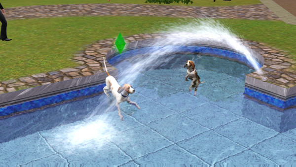 The two fox hounds in the fountain to cool off on a hot day after hunting