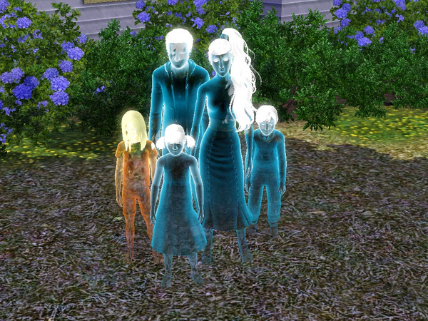 here is what everyone been wanting to know but here you go :) the sims aren't died it was that my sims had a ghost children but they didn't die in a fire or drowned one children is from a orange ghost why the eithers are blue cause when i moved in i didn't no there where ghost so i hope this helps you :)