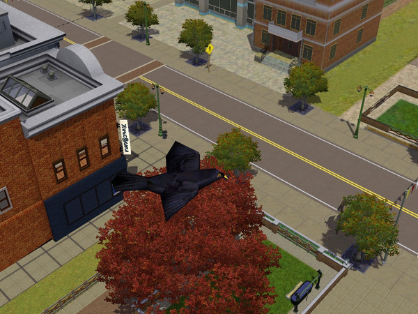 Sims 3 pets...a crow flying through the sky :3