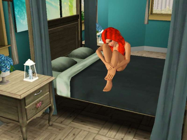 My sim, like me, has a hard time trying to get out of bed on a Sunday Morning. She's all curled up, and yes she has on clothes! lol