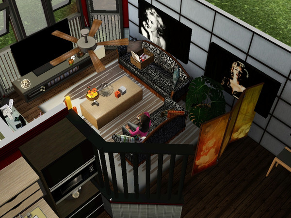 Fan really spins, Practically border-less TV, Marilyn Monroe posters really pull this room together and make your Sim feel truly at home.