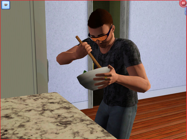 This Little screenshot shows Somat or other Dudley cooking like a pro. He's got his bling on show and his glasses on tight.