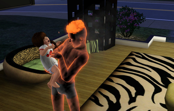 Robbie Allen, as an orange ghost (Death by meteor), and his toddler daughter, Red Allen.