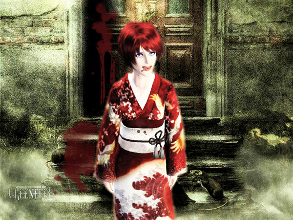 This is Nami, my first vampire sim. She was born in the game, and later, in her teens, she was bitten by her boyfriend - and became a vampire.