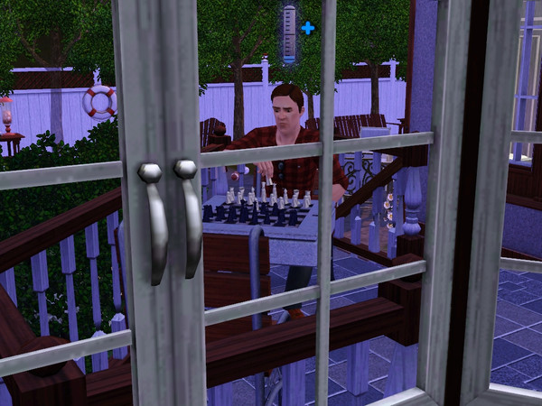 While Matt works on his chess skills, someone watches from inside his home.