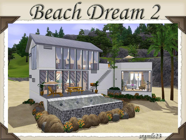 Another beach house, built in the same style of the first ... this second house has 2 bedrooms, 2 bathrooms ... A relaxing room overlooking the ocean, in its decoration predominates harnesses dark tone ... with a swimming pool and terrace unusual but beautiful ...... A beautiful and relaxing house for the sims who wants peace and hapiness ;) Enjoy it!