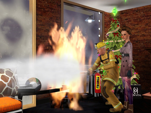 I accidentally left the fireplace on while my Sims were both at work and a fire destroyed their Christmas tree, presents, and some other things :'( So much for Holiday cheer, and of course, insurance doesn't even begin to help replace the things burned in the fire...