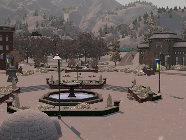 It's in Sunset Valley, winter holiday. I've tried to catch a view without any sims. Guess I've succeeded in it, huh?
