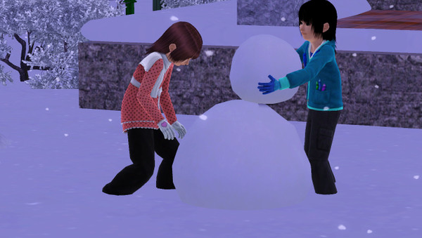 Park Ah Hee and Park Joo Young are constructing their first snowman of the season.