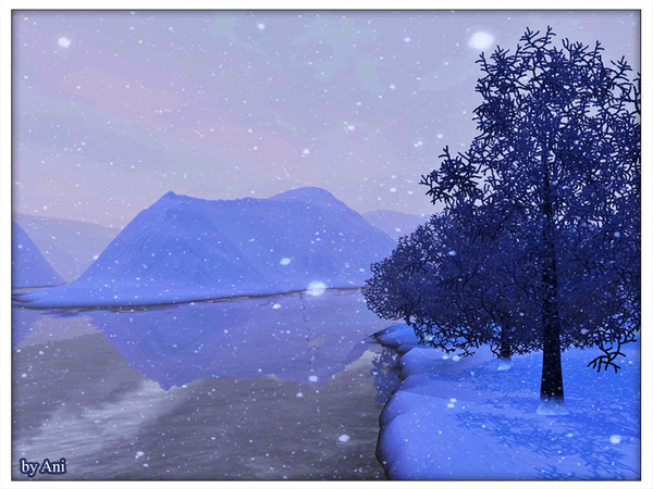 Snowfall over the riverside