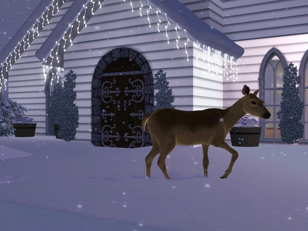 Deer outside of a church.