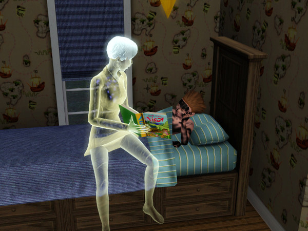 A random ghost from the lot reads a singed little boy to sleep!