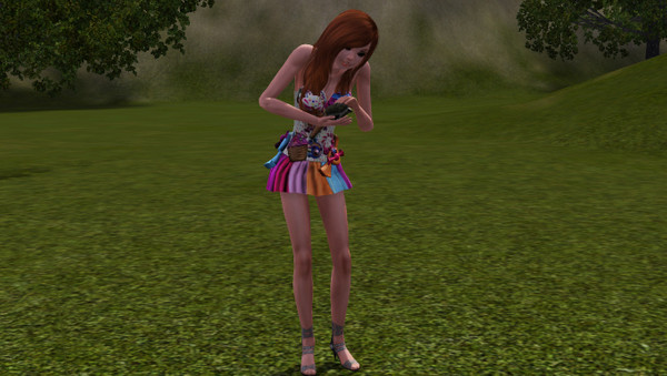 My sim, Angell, playing with a cutie called Gibson. I found him near a fishing spot.