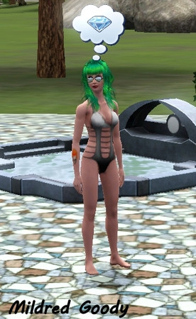 Spending a day in the sun at home, bad witch twin Mildred Goody