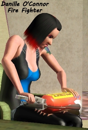 Maintaining her fire extinguisher Danielle O'Connor
