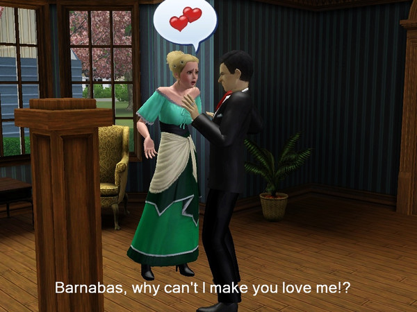 Angelique has been obsessively in love with Barnabas since their love affair in Martinique. Forget the fact that she ruined his family, no matter what she does she cannot make him love her.