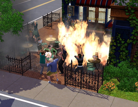 Fire spreading around the cafe area