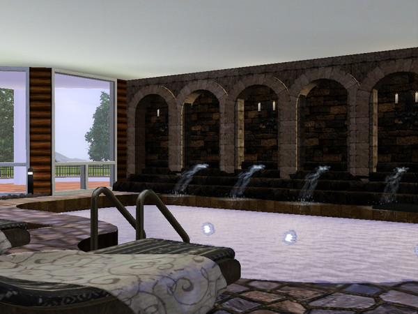 I was building a custom house but I had no room in the backyard for a pool, so keeping with the whole beach theme of the house, I made an indoor pool. I will post screenshots of the house soon. (: