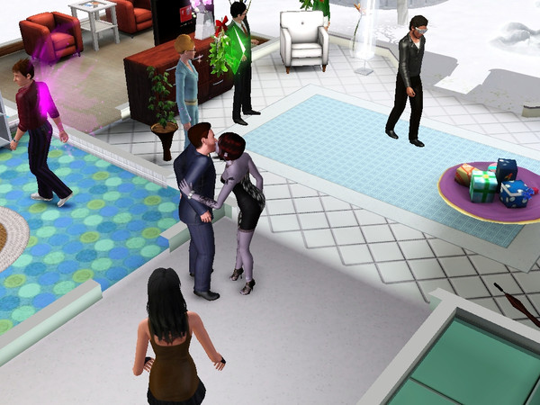 Why does my sim kiss everyone under the mistletoe?! Too much of the mood. A little cold there as well :P