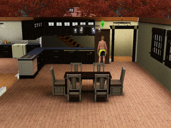 This is the kitchen/dining area. its will sit 6 Sims. Don't pay attention to Bill, my cousin getting into the fridge, he don't come with the apartment. He was just hungry.