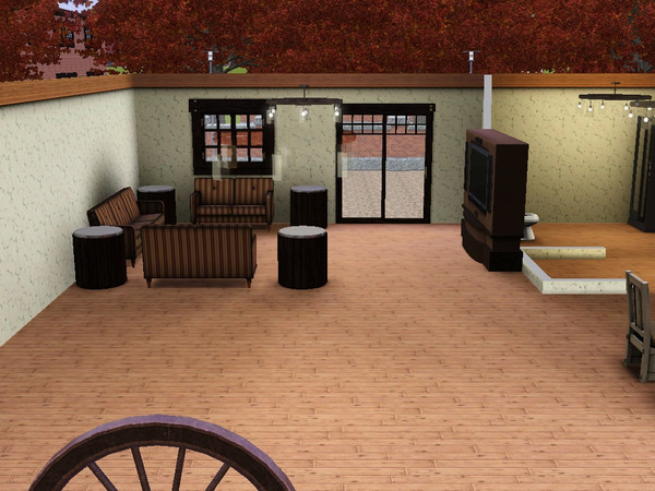 This is the living room area. I only put a TV, and sofas and end tables. I left the other half for your Sims to put what they want. My Sims are planning on putting either a pool table or the new ping pong table there.