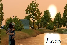 A picture of a beautiful golden sunset, in the background of my sims in love!