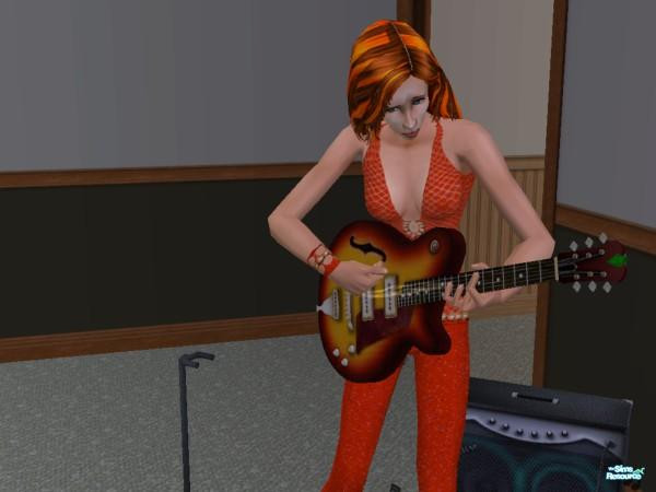 Fire nervously plaays the guitar. Fire is one of my older sims, sporting an older hair style, and an old outfit. I don't even remember where I got them, so it's hard to thank people, but I loved her expression.
