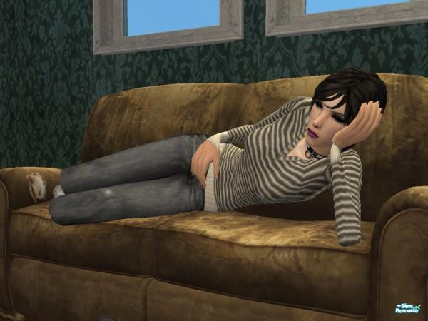 I don't know why, but I find this one really grabs my eye. Something about her pose, or the contrast in the colours. Trish - a recent addition to my Legacy 'hood - lounging on the worn-out old loveseat in her tiny, rundown home.
