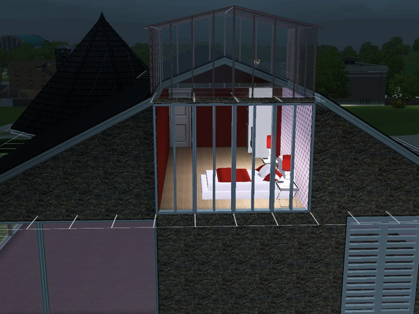 3rd floor bedroom with glass roof in red and white :)