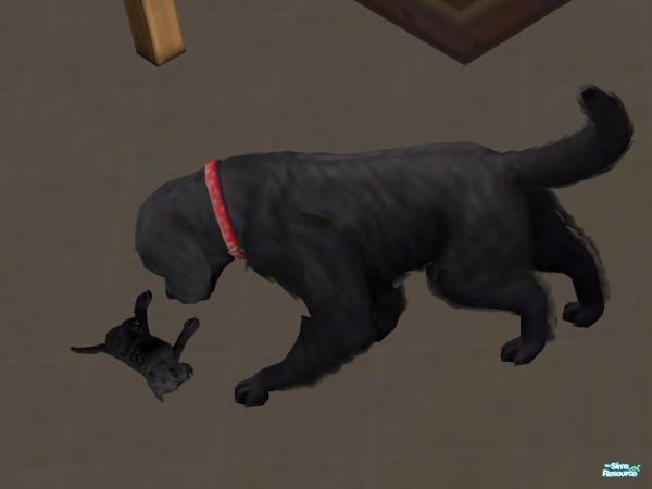 Mommy dog Gritten is playing with her puppy Groin