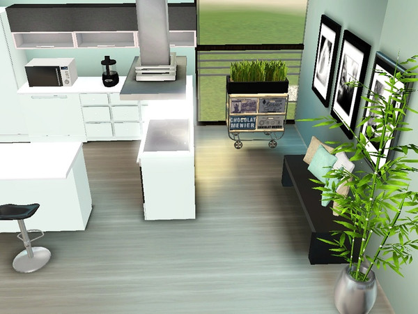 Playing around with the colour combo of minty colours and black/dark wood. More pics of this house over here: http://simsrox.tumblr.com/post/62410906293/black-beach-house-i-made-for-fun-i-am-quite-taken.