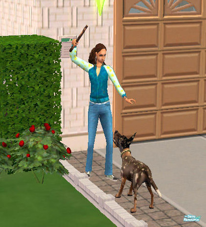 Poppy the Cape African Hunting Dog waits impatiently for Phoebe to throw the stick.