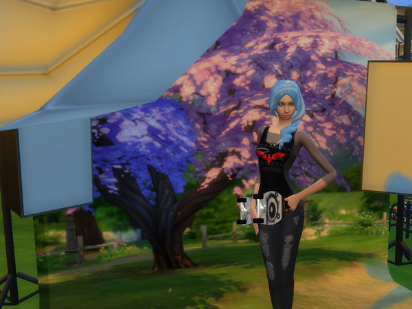 My new teen sim Hallie Darklight wearing her tank and see through shirtSkateboard by #Haneco Pose by #Flowerchamber #summerfun #skateboarding