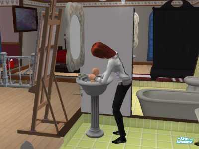 Daisy gets washed in the sink for the first time.