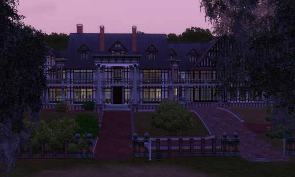 The mansion I built over time far off in the countryside. This is my first post of many I hope that I will have many downloads and people can enjoy my Houses and gardens. This is a 12 bedroom 15 baths 3 stories and two more below. The guest is around the corner and the pool has it own lots If you want to see more Please someone anyone let Me know lol.